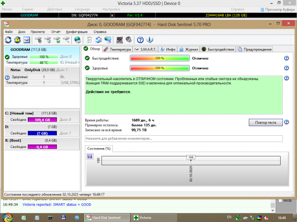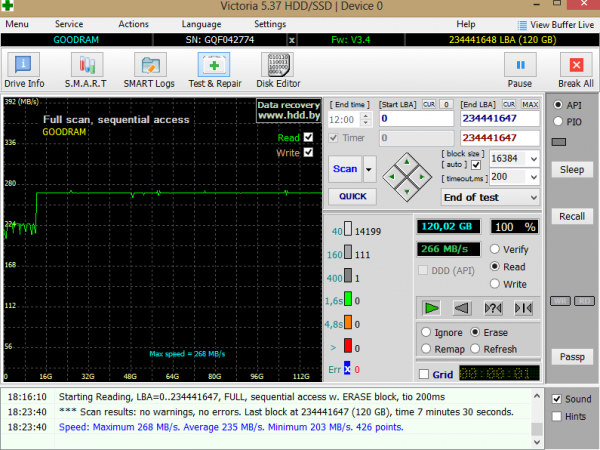 GoodRAM CL100-120GB TLC низкая скорость записи, прошивка в MLC